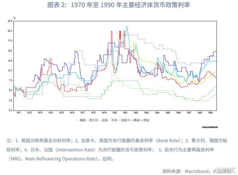 不同于英国主导的第一轮债务周期向美国主导的第二轮债务切换,这一次全球并未出现新旧利率锚的切换。美国凭借更强的经济韧性率先走出危机,继续稳居全球资金的核心位置。与此同时,英国、法国、意大利等国在1980年前后被迫同步大幅加息以抵御资本外流,货币政策独立性大幅下降;德国、日本则因制度差异展现出相对独立的轨迹。虽然欧洲主要国家在1970年代改为浮动汇率,但其“依附路径”明显分化:英国因伦敦是全球离岸美元中心,使英镑与美元高度联动;法国和意大利加入欧洲货币体系后,其利率与汇率格局逐渐向德国靠拢。结果就是,美国利率成为全球层面的主锚,而德国在欧洲区域内形成“次级锚”(Giavazzi & Giovannini, 1989;Bordo & MacDonald, 2005)。