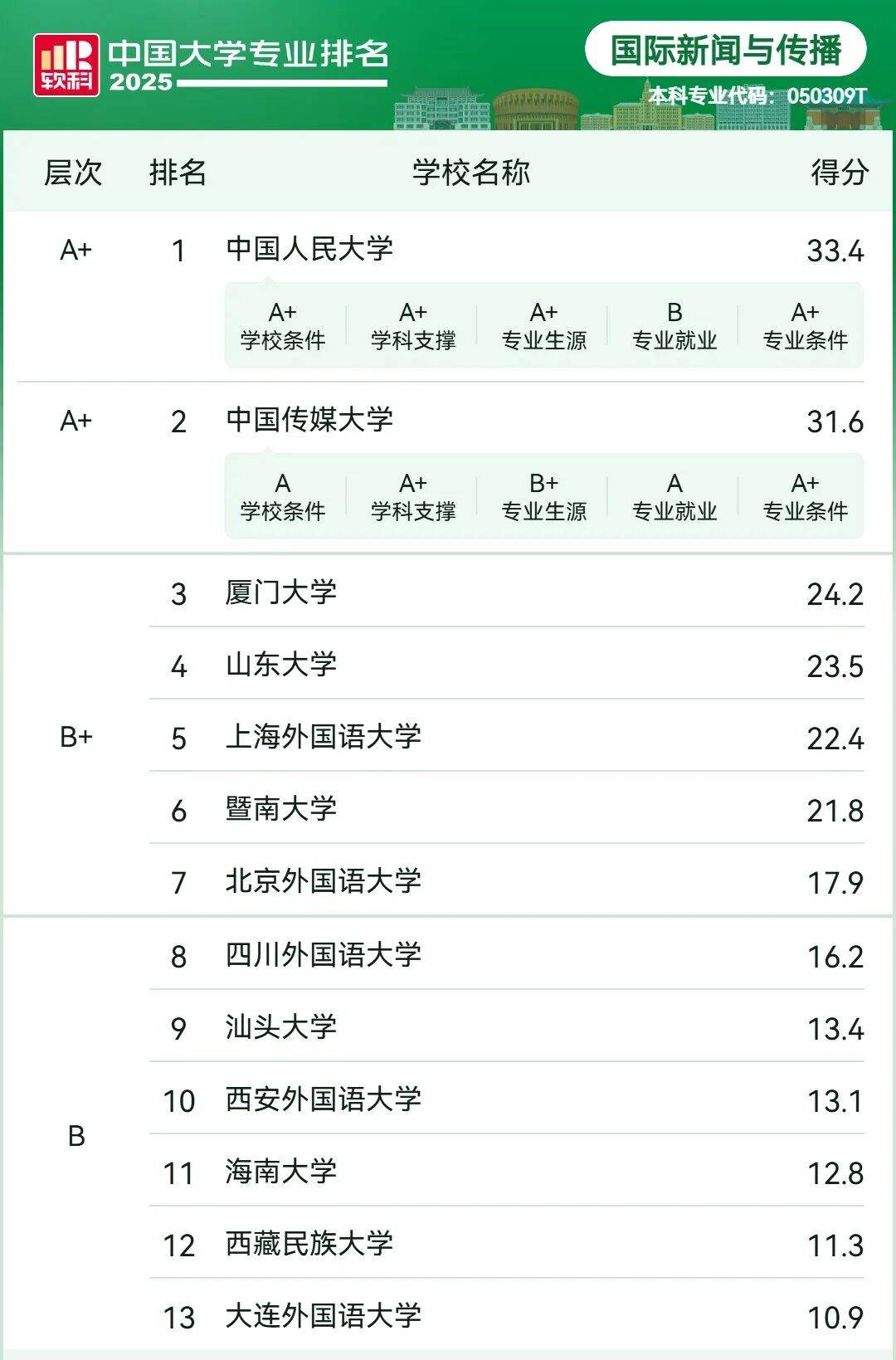 国人民大学:80%以上的继续深造,成为国际传播硕士研究生,部分出国继续读博士深造,硕士毕业后主要在人民日报社、新华社和中国国际电视台CGTN等中央主流媒体国际传播部门工作,或央企驻外分公司的公共传播部门工作。