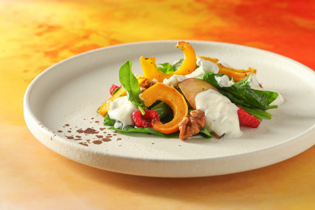 【南瓜菠菜帕玛火腿】带食客足不出京感受意大利秋日的田园风光。咸鲜的帕尔玛火腿搭配有机蔬果、坚果和希腊薄荷酸奶汁等健康原材料,多种口感相互交织,每一口都是大自然的味道。【法式传统油封鸭腿】是秋冬理想的美食选择。传统的法式橄榄油油封工艺与肥美秋鸭的巧妙结合,使得鸭腿外酥里嫩,肥美多汁。