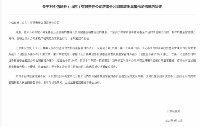 官网合法彩票平台- 北京赛车- 时时彩体彩六合彩因多项违规行为中信证券(山东)有限责任公司济南分公司被出具警示函