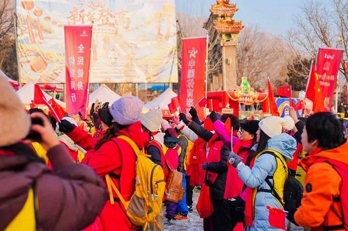 活动主会场设在山脚开阔处。中国体育彩票的标识与鲜红的迎新装饰相互映衬,在清冽的空气中显得格外醒目,“安心购彩守护行动”暨体彩新春季品牌推广活动同步展开,使这场登山盛会增添了理性与温暖的公益维度。