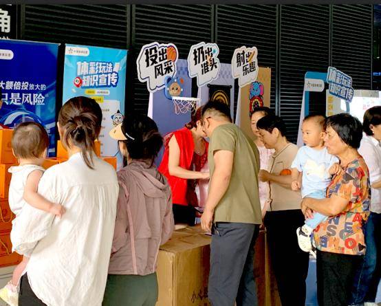 活动采用线上线下联动方式开展。线上,市民在活动前可通过“益积分”小程序在线学习体彩知识,生成活动“专属通行证”并积累“彩豆”奖励。线下,设置多个趣味运动体验区,将体彩各玩法的特点巧妙融入互动游戏中。在“投出风采”篮球区,参与者可通过投篮体验“竞彩”游戏的悬念与激情。“扔出准头”飞镖区域则考验参与者的耐心与精准,呼应了体彩对细节把握的要求;“射出乐趣”粘球枪项目更是成为亲子家庭的打卡热点,轻松有趣的玩法让大人和孩子共同享受运动的乐趣。